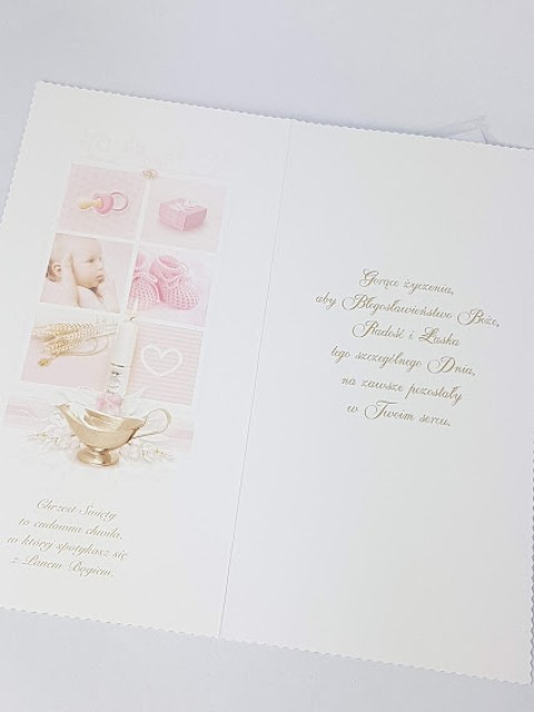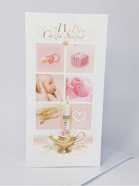 Kartka będzie dobrym uzupełnieniem do prezentu na Chrzest Święty.
