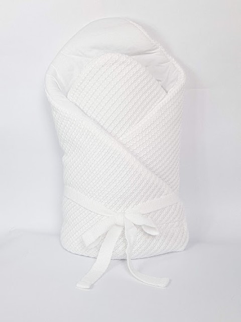 Miękki dzianinowy rożek w kolorze białym.Idealny na uroczytość Chrztu.