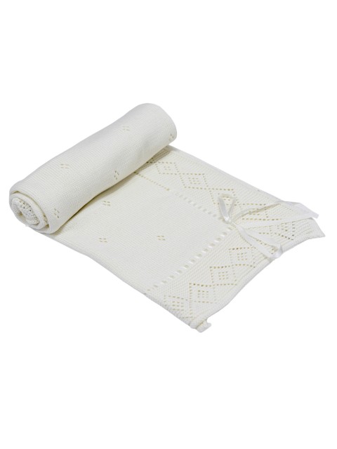 Elegancki, miękki dzianinowy kocyk "Tasiemka" wykonany z wysokiej jakości bawełny.