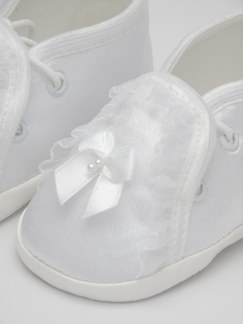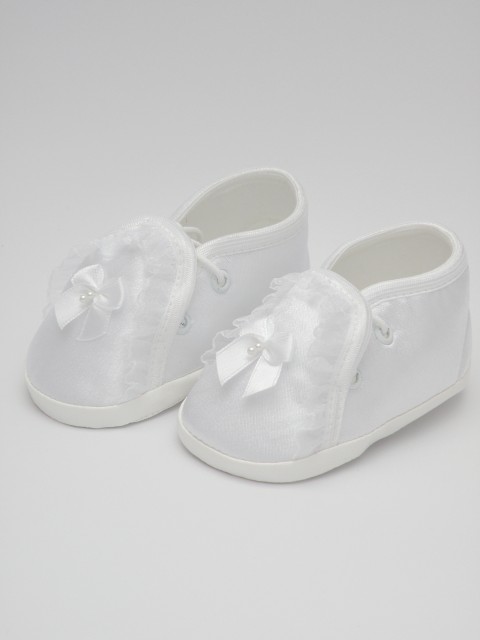 Atłasowe buciki do chrztu dla dziewczynki -białe