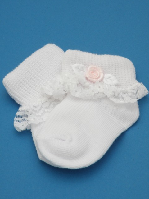 Dziewczęce skarpetki MILUSIE ozdobine koronką i rózyczką.