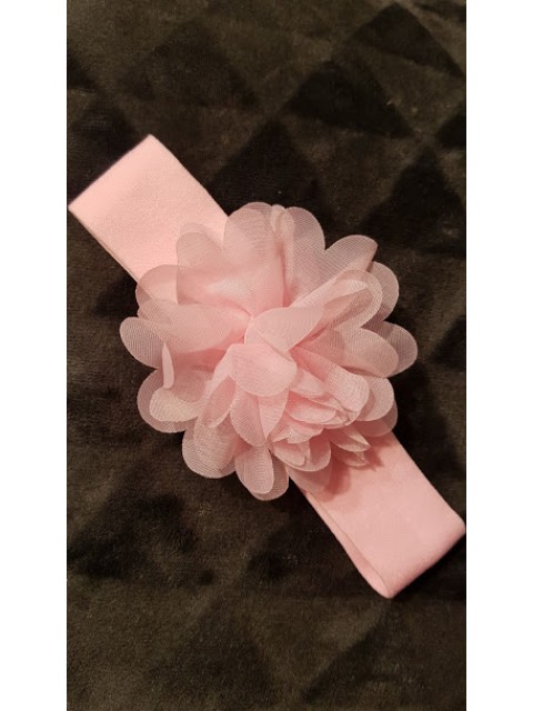 Urocza elastyczna opaska dziecięca z dużym efektownym kwiatem w kolorzejasnego różu.