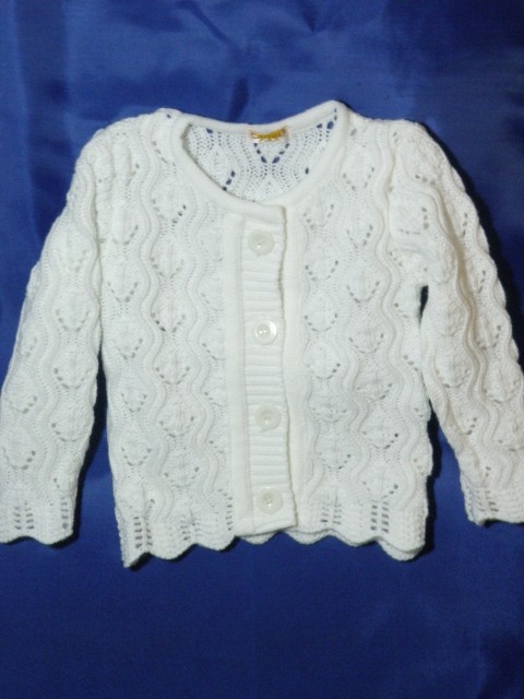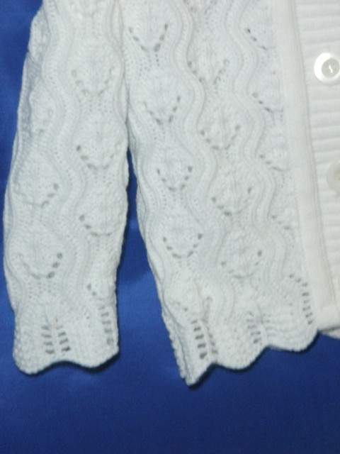 Bardzo dobrej jakości ażurowy sweterek w kolorze białym.