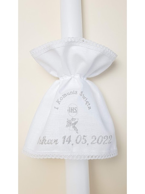 Na profitce standardowo jest wyhaftowane: I Komunia Świeta i kielich.