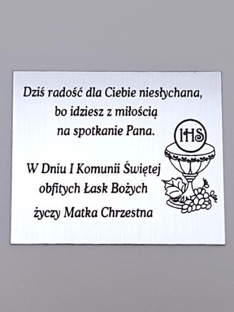 Do umieszczena na srebrnym obrazku, albumie na zdjęcia, pozytywce lub innych prezentach na Pierwszą Komunię Świętą.
