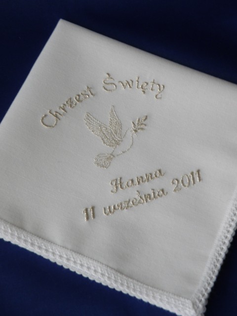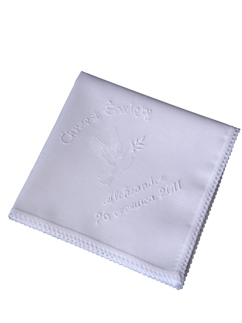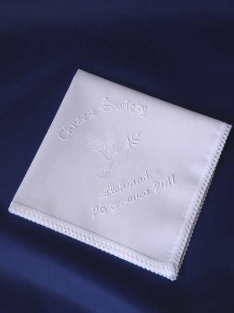 Każda szatka jest starannie haftowana, co pozwala na dodanie osobistego akcentu. Możemy wyhaftować imię dziecka, datę chrztu oraz wybrany przez Ciebie wzór lub symbol religijny. Dzięki temu chusteczka staje się nie tylko praktycznym elementem ceremonii, ale także wyjątkowym upominkiem, który będzie przypominał o tym ważnym dniu.